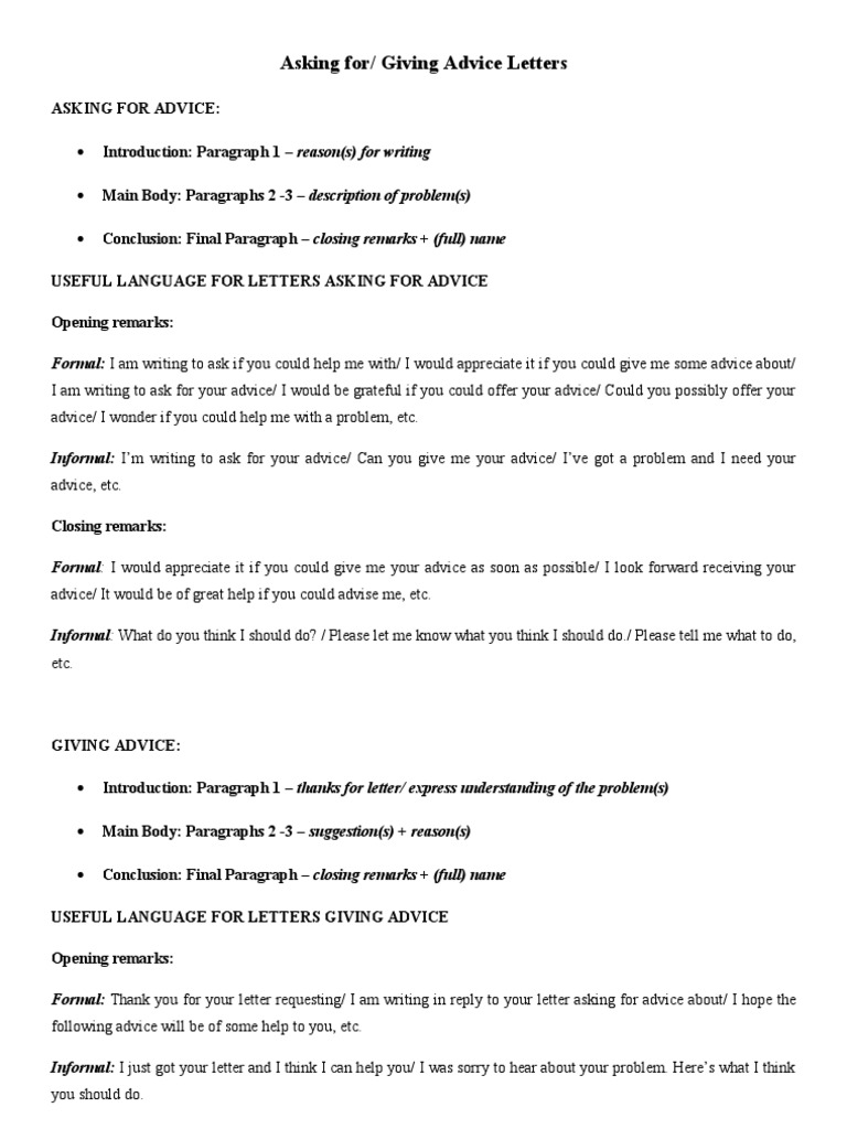 Asking For Giving Advice Letter